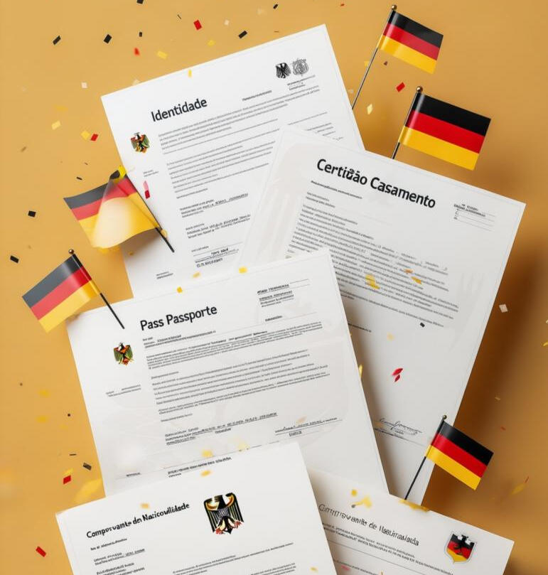 Estes são alguns dos principais documentos solicitados pelo consulado alemão no processo de cidadania: identidade, certidões, passaporte e comprovantes de descendência. Cada caso é único, e eu ajudo você a organizar, traduzir e validar todos os papéis necessários para que nada atrase o seu processo.